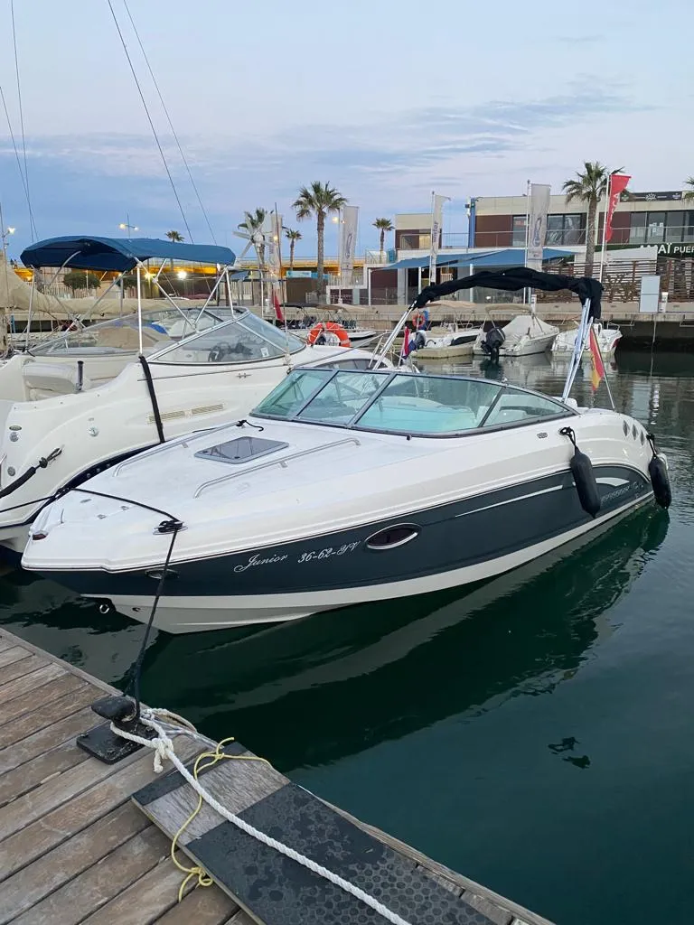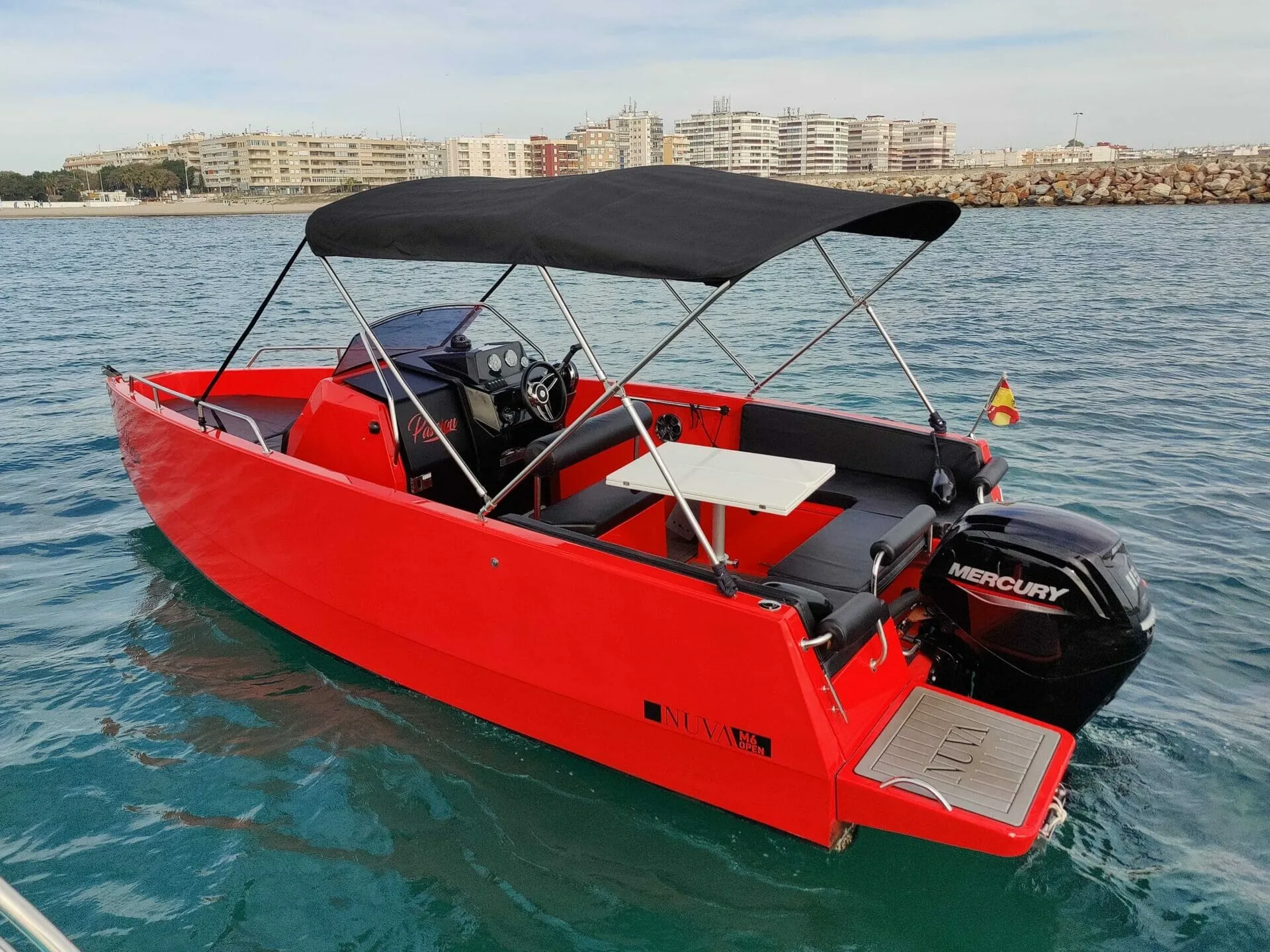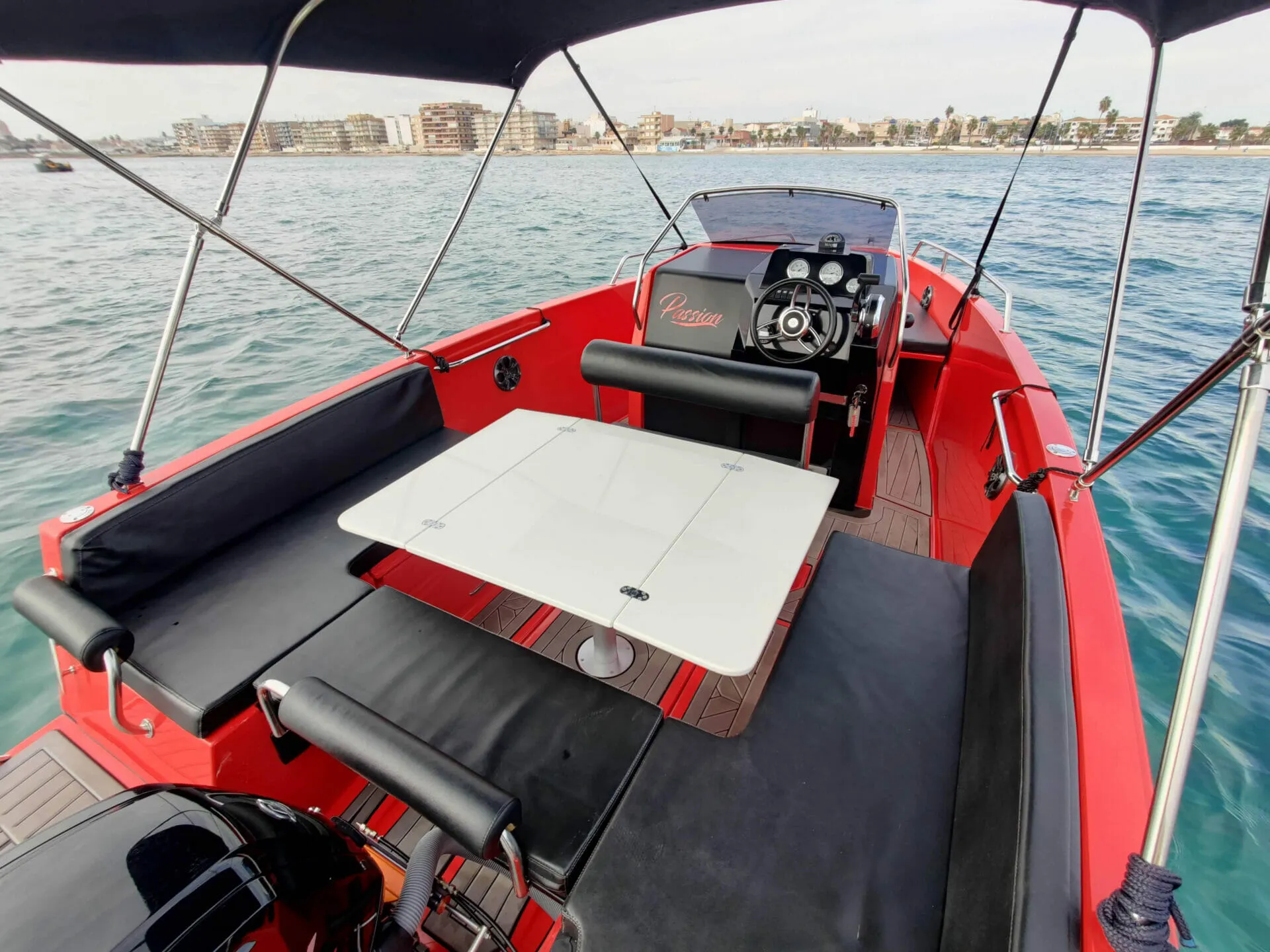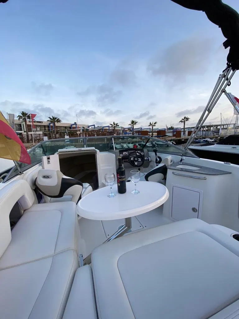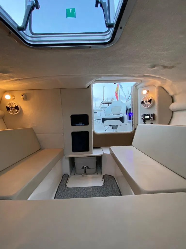 6 Metros de eslora Solarium en proa Escalera de acceso Mesa en popa Motor fueraborda de 115CV Máximo 8 personas Sin Patrón