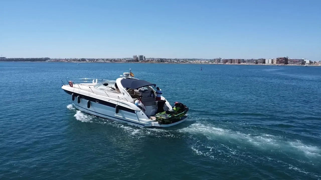 11,00 Metros de eslora Asientos de teca Solárium en proa Escalera de acceso WC y Ducha Tablas de Paddle Surf Copa de Cava Premium Máximo 9 personas